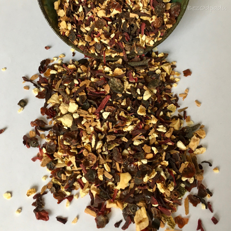 - BIO = šípky, ibištek, pomarančová kôra, klinček, jablká, škorica, éterické oleje (pomaranč, mandarínka, klinček, levanduľa, škorica)